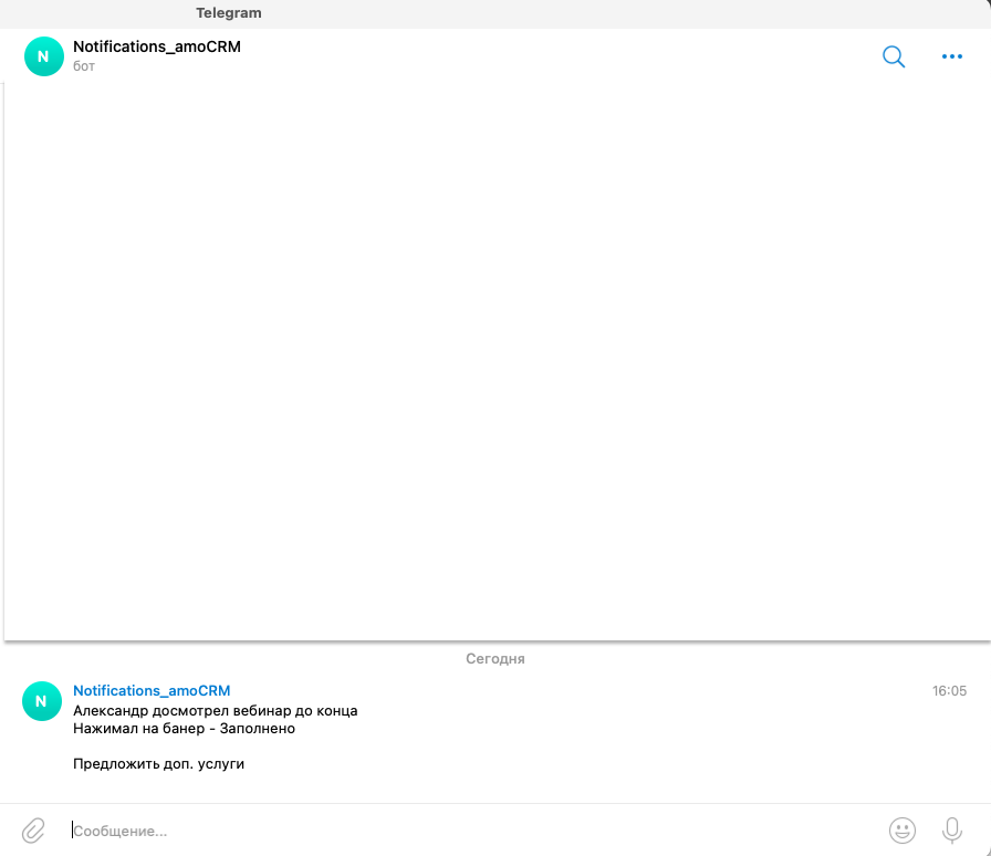 Используйте возможность интегрироваться с другими инструментами. Уведомление в соц. сети с указанием ключевых интересующих данных по клиенту.