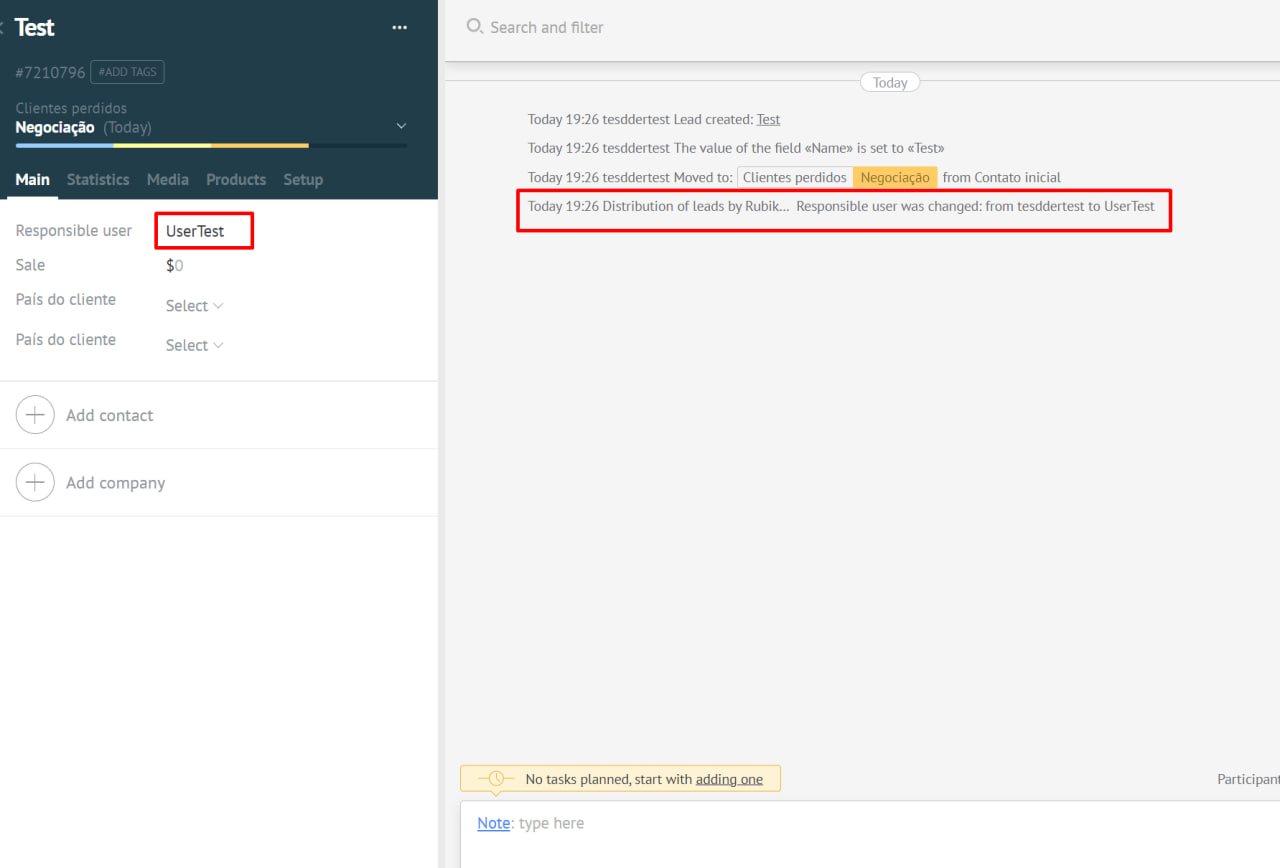 After an hour, if the manager has not processed the application and has not moved it to the next stage, a notification is sent to Kommo through our widget. If in this case the application was not accepted for work, the person responsible also changes