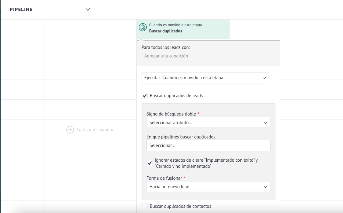 Con nuestro desencadenante, tienes la flexibilidad para configurar la fusión automática de leads. Por ejemplo, basado en un número de certificado común
