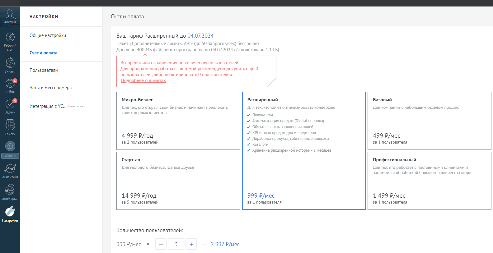 El widget le permite reducir el riesgo de exceder los límites en Kommo