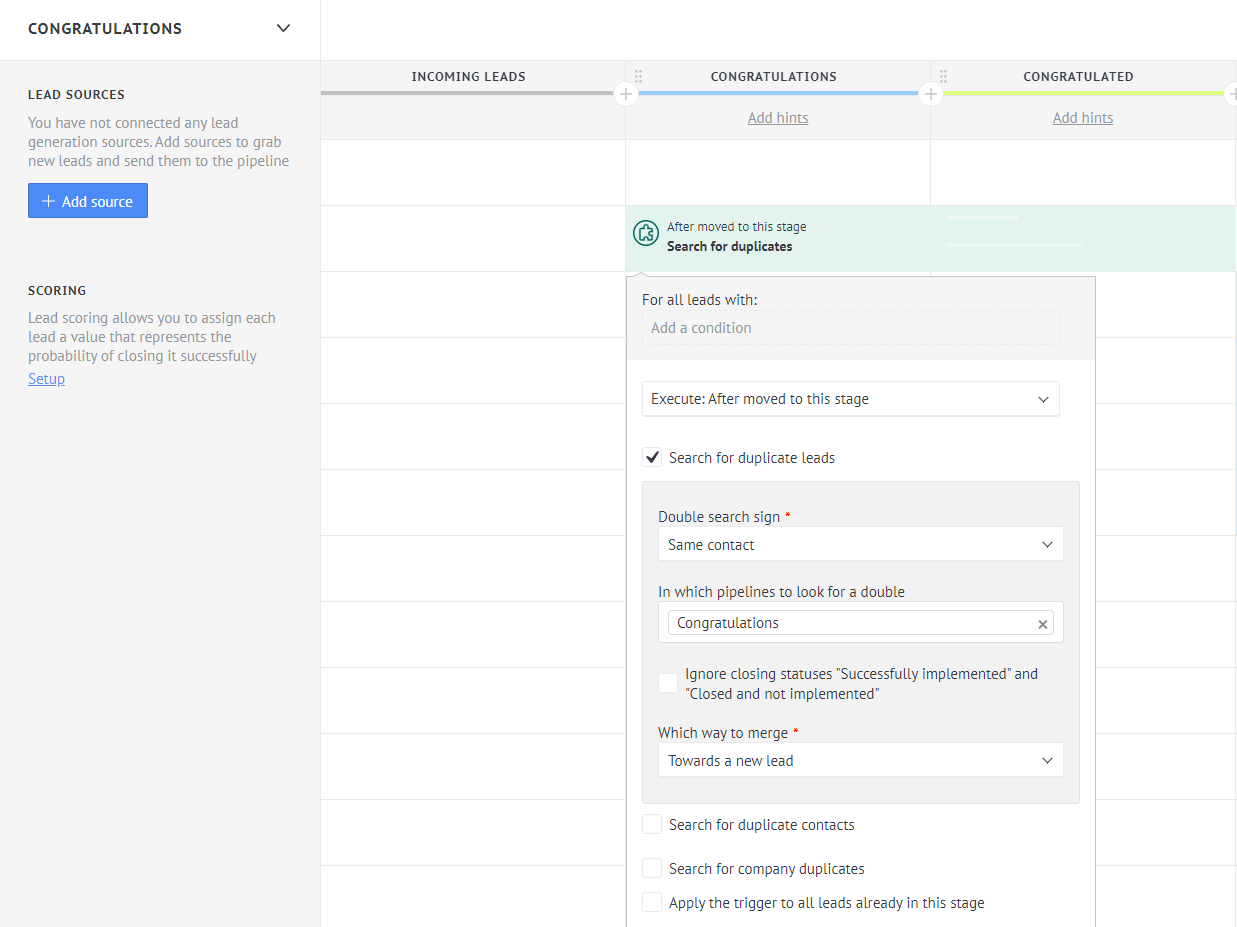 New leads will not clog up your statistics in the main pipeline, but with their help you will increase profits and control the actions of your clients