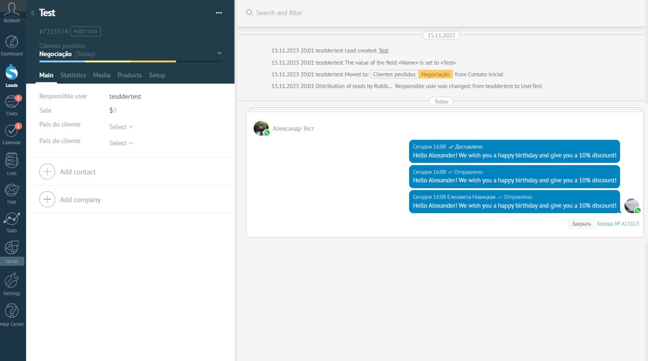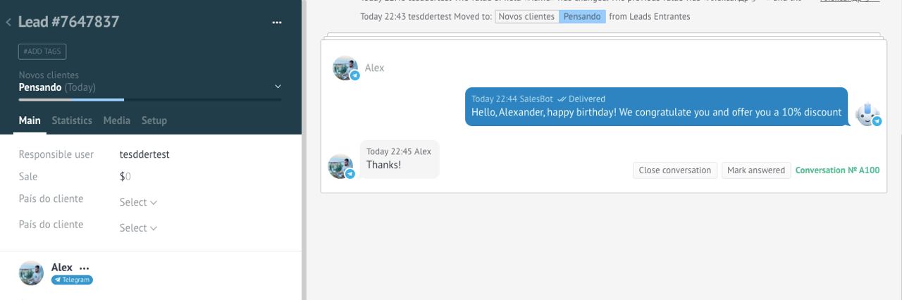 As a result, you will receive automation related to the creation of a lead from the main pipeline into an additional mailing pipeline. In this pipeline, your clients will be sent the necessary message timed to the date you need.