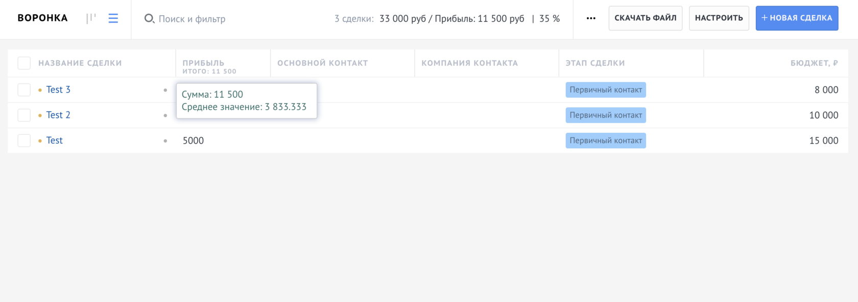 - Просмотреть среднее значение у данного поля по сделкам в воронке, либо по выставленному фильтру