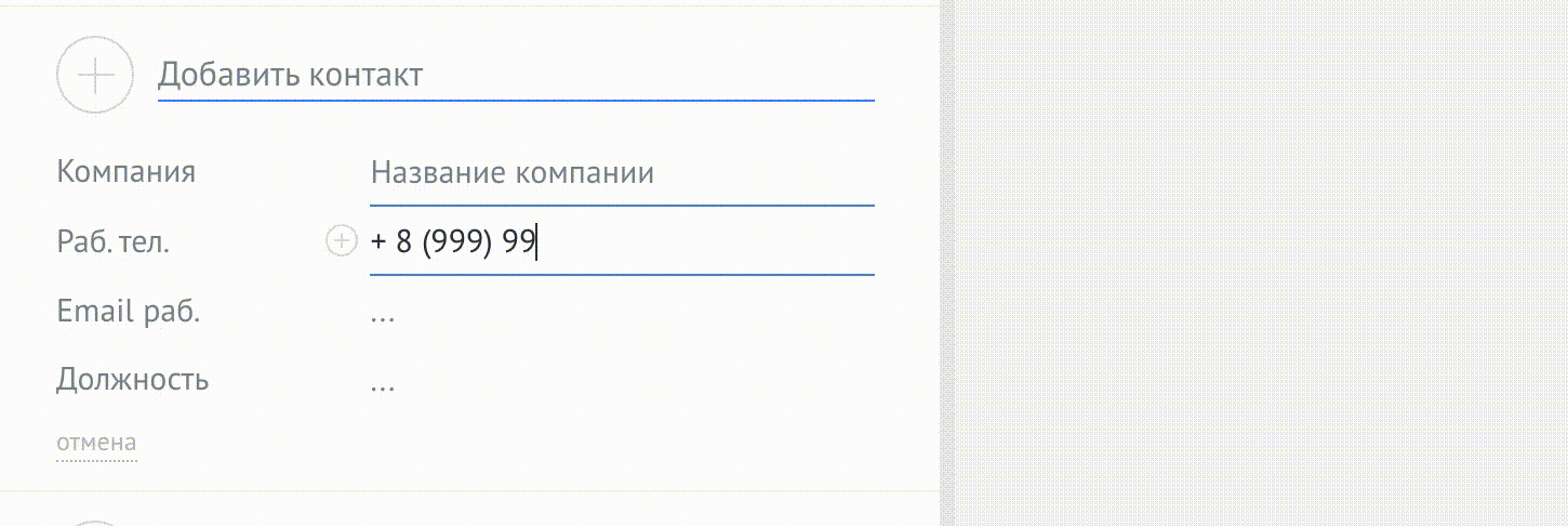 Заполняя номер телефона виджет автоматически добавляет нужную Вам маску к номеру телефона при заполнении данных.